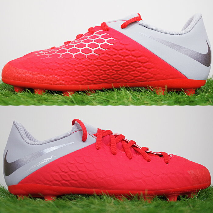 ・ラップコード構造で、鋭いカットの時でも足の側面をしっかりサポート・全体に使用したテクスチャーで柔らかなボールタッチを実現・非対称の編み構造でボールコントロールエリアとキックゾーンを拡大・メッシュ素材が通気性に優れた快適な履き心地を提供・短いTPUスタッズが、ハードなフィールドでトラクションを提供キーワードナイキ サッカースパイク ジュニアジュニア ハイパーヴェノム ファントム III ACADEMY HG